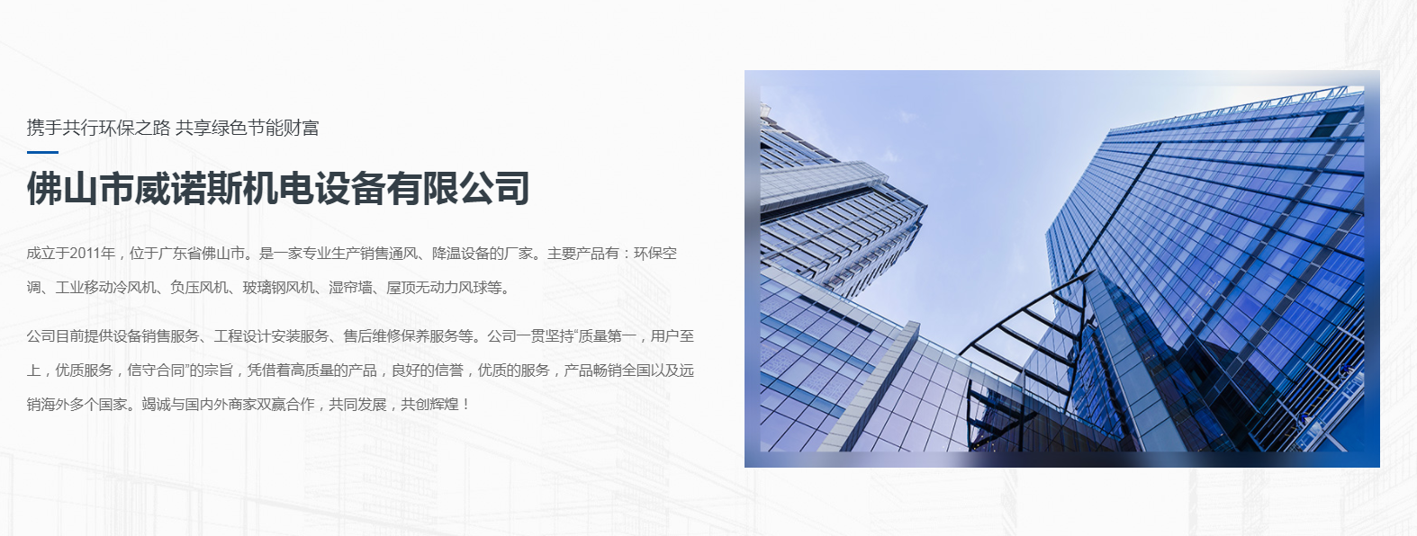今天来分享一个蒸发冷空调网站制作案例——佛山市威诺斯机电设备有限公司