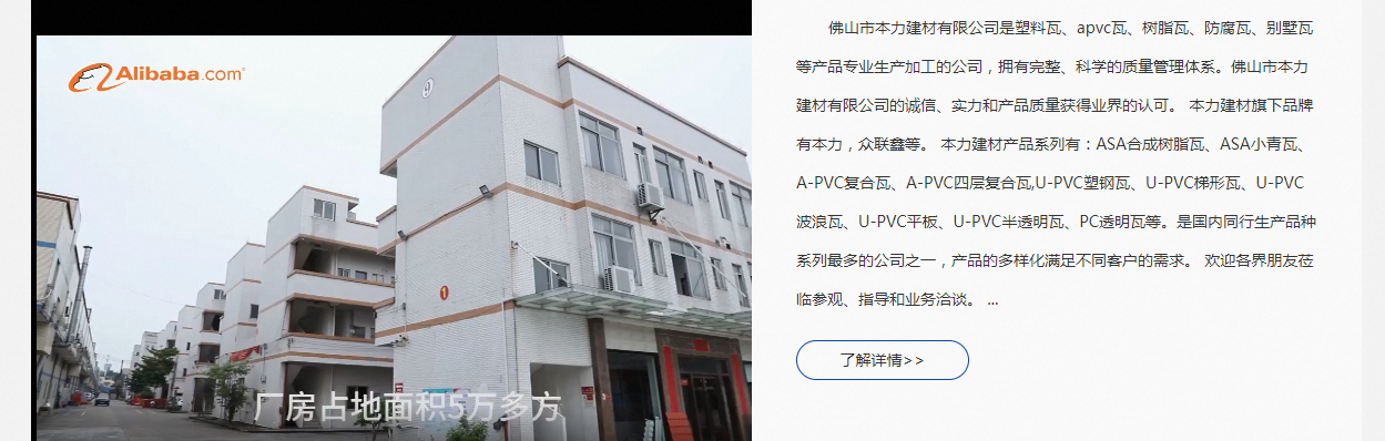 佛山市本力建材有限公司是一家集研发、设计、生产、销售于一体的专业化屋面建材公司。经过多年的发展,本力建材已拥有员工100多人,占地总面积30000多平方米,拥有9条先进生产线。本力建材旗下品牌有本力,众联鑫等。