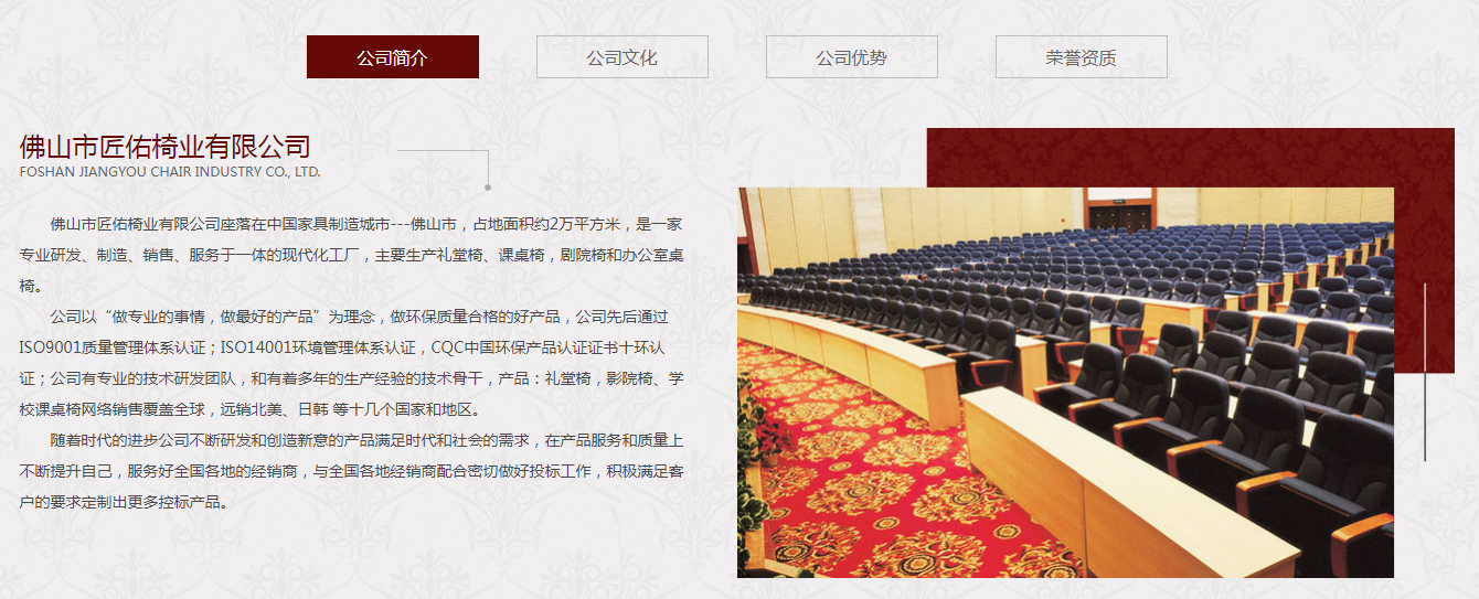 今天来分享一个礼堂椅网站建设案例——佛山市匠佑椅业有限公司