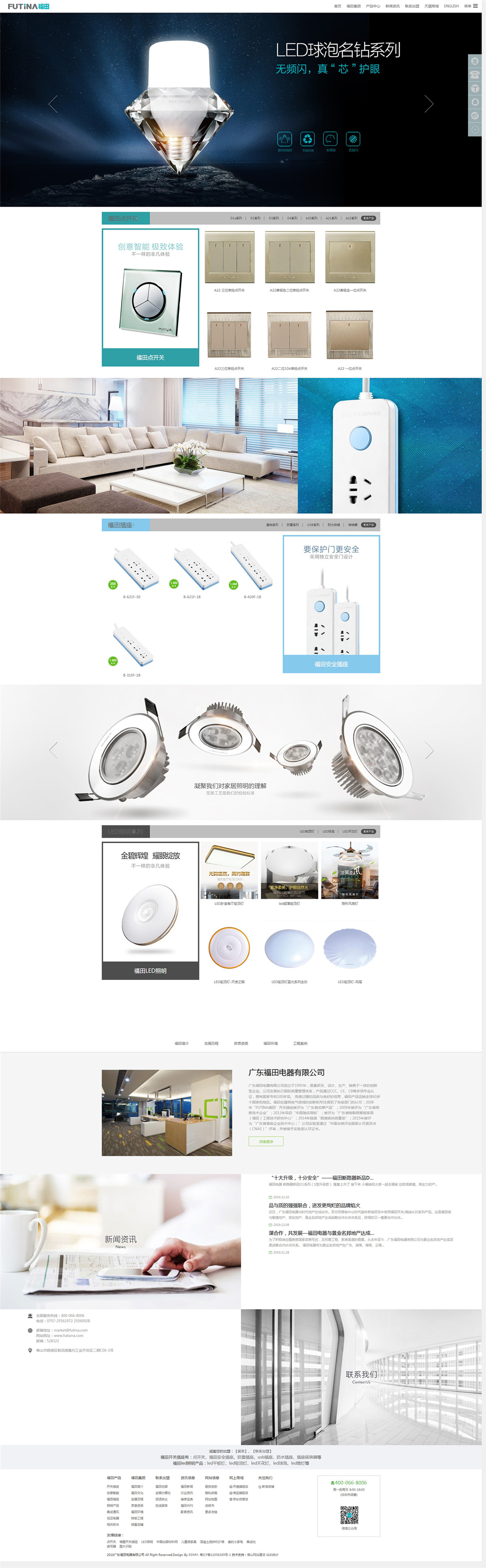 广东福田电器有限公司创立于1995年,是集研发、设计、生产、销售于一体的创新型企业。公司全面执行国际质量管理体系,产品通过CCC、CE、CB等多项专业认证,拥有国家专利100多项。 凭借过硬的品质与良好的信誉,福田产品远销全球60多个国家和地区。福田在建筑电气领域的创新和专注得到了各级部门的认可:2008年“FUTINA福田”开关插座被评为“广东省名牌产品”;2009年被评为“广东省高新技术企业”;2013年荣获“中国驰名商标”;被评为“广东省物联网智能家居(福田)工程技术研究中心”;2014年独揽“顺德政府质量奖”……