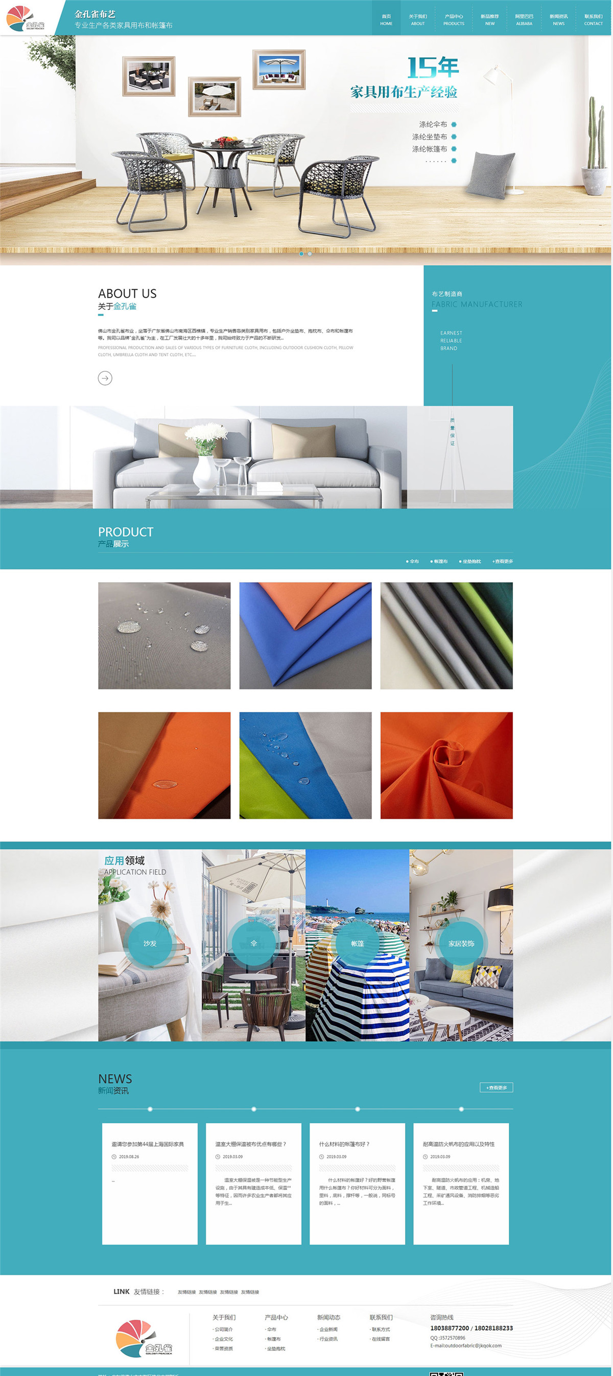 佛山市金孔雀布业,坐落于广东省佛山市南海区西樵镇,专业生产销售各类别家具用布,包括户外坐垫布、抱枕布、伞布和帐篷布等。我司以品牌"金孔雀"为主,在工厂发展壮大的十多年里,我司始终致力于产品的不断研发,凭着优良的产品、专业的销售和过硬的技术赢得了广大客户的认可。为了适应市场的发展,产品可依据客户要求代为加工防火、防污、防水等工艺处理,各项技术指标均能达到国际标准和品质测试。