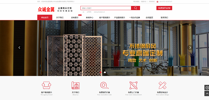 公司专注于不锈钢/铝/铜产品研发,专业定制各类彩色各异的不锈钢屏风、铝雕屏风/隔断、铝雕护栏、铝雕背景墙、不锈钢酒架、不锈钢酒柜、不锈钢吊顶、不锈钢背景墙、不锈钢包边门套、不锈钢展架展柜、不锈钢护栏扶手、不锈钢玻璃门、不锈钢博古架、拉手,踢脚线,不锈钢门套,不锈钢工艺品;铝屏风、铝浮雕壁画;铜屏风,铜门,铜隔断等产品,承接不锈钢装饰工程,金属安装工程,不锈钢形象工程,不锈钢室内外景观装饰工程,酒店金属安装工程,售楼部与别墅金属工程等等。