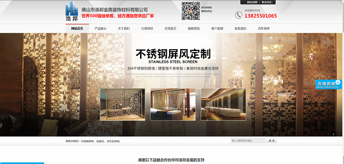 佛山市浩邦金属装饰材料有限公司产品经国家防火建筑材料质量监督检验中心抽检,全部项目符合标准,并被建设部中国建筑装饰协会建筑五金委员会评为工程建筑选用产品,连续国家检测达标产品等荣誉称号,并通过ISO9001-2000国际质量管理体系认证,中国优秀绿色环保产品证书,建立了一套完善的质量管理体系。浩邦拥有一班技术熟练、经验丰富的车间生产技术人员和设计师团队。