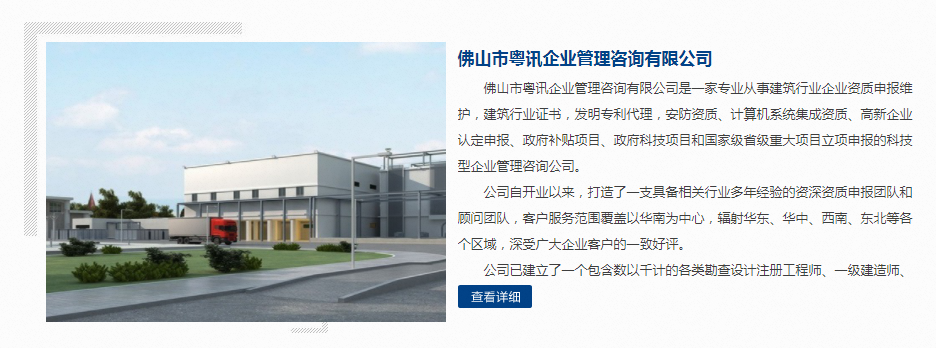 佛山市粤讯企业管理咨询有限公司是一家专业从事建筑行业企业资质申报维护,建筑行业证书,发明专利代理,安防资质、计算机系统集成资质、高新企业认定申报、政府补贴项目、政府科技项目和省级重大项目立项申报的科技型企业管理咨询公司。