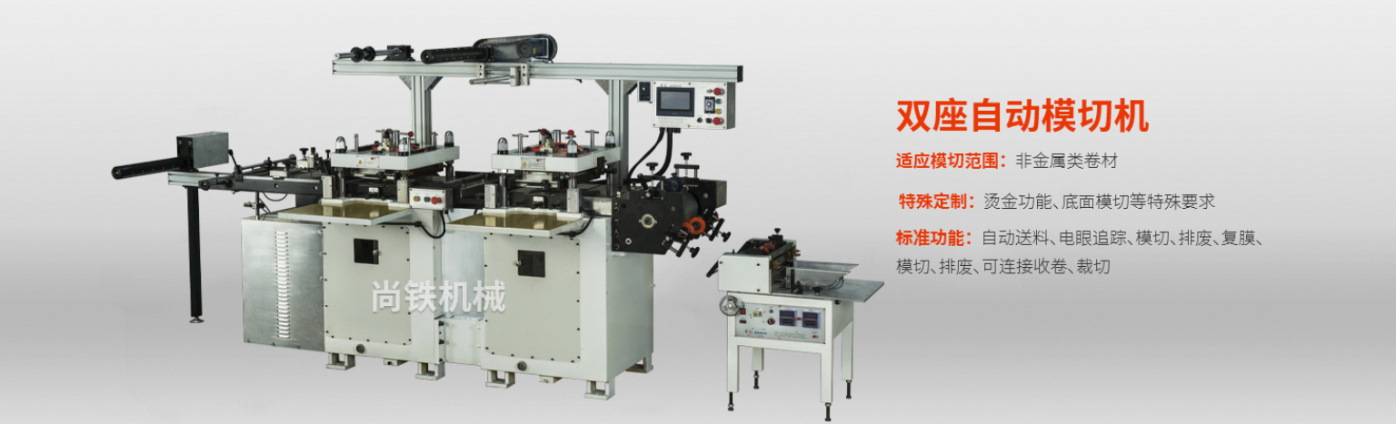 本公司从1991年至今,经过20年不断的推陈出新,自主创新研制出一系列不干胶商标印刷机和自动模切机。印刷机从平压式到斜压式,从单一型到集送料、烫金、多色印刷、复膜、模切、排废等一次完成的全自动商标印刷机。自动模切机更有质的突破,从拉杆式到数控型,单座到双座,压力从5吨到80吨,宽幅从200mm到1000mm的较大面积模切,配合专门研制的复膜机、数控裁片机、贴合送料机等可自行组合不同加工工艺要求的生产线,为客户提供更多的解决方案,现已在电子、IT、汽车等制造行业取得广泛的认同,特别应用于背光模组用光学膜片、胶粘制品、防尘材料、防震产品、绝缘材料、耐热隔热材料的冲切。